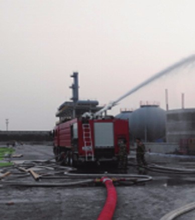 2016年6月,根據江蘇省泰州市消防支隊的要求,對泰興市城區(qū)消防中隊現役的五十鈴A類泡沫消防車局部進行了改造,在不影響消防車原有消防作戰(zhàn)功能的情況下,配套增加GS100L/S單供水裝置。由30KW汽油發(fā)電機組、18.5KW消防潛水電泵(重量36kg)、變頻控制系統、水帶電動收卷裝置(搖控操作)、DN200水帶500m、輕便起吊裝置(搖控操作)、分水器、200-150和200-125變徑連接管等主要部件組成的單供水裝置。改造后的消防車,既實行了“一車兩用”(即消防滅火、消防供水),同時也實行了“自供自給”(即:如果該消防車距離水源100米以內,可以通過供水裝置直接向水箱或進水口供水)。其效果和性能參數(供水流量≥100L/S、出水壓力≥0.25 MPa、供水距離≥300米)經測試達到了泰州市消防支隊提出的各項要求,2016年9月21-28日在南京浦口舉辦的全國消防演習中,作為后勤保障供水系統參加了演習,得到了指揮部的認可。2016年11月25日泰興三木化工儲罐著火,作為后勤保障供水系統參加了滅火作戰(zhàn),供水時間達12小時,在供水過程中未出現任何供水系統故障,運行良好。